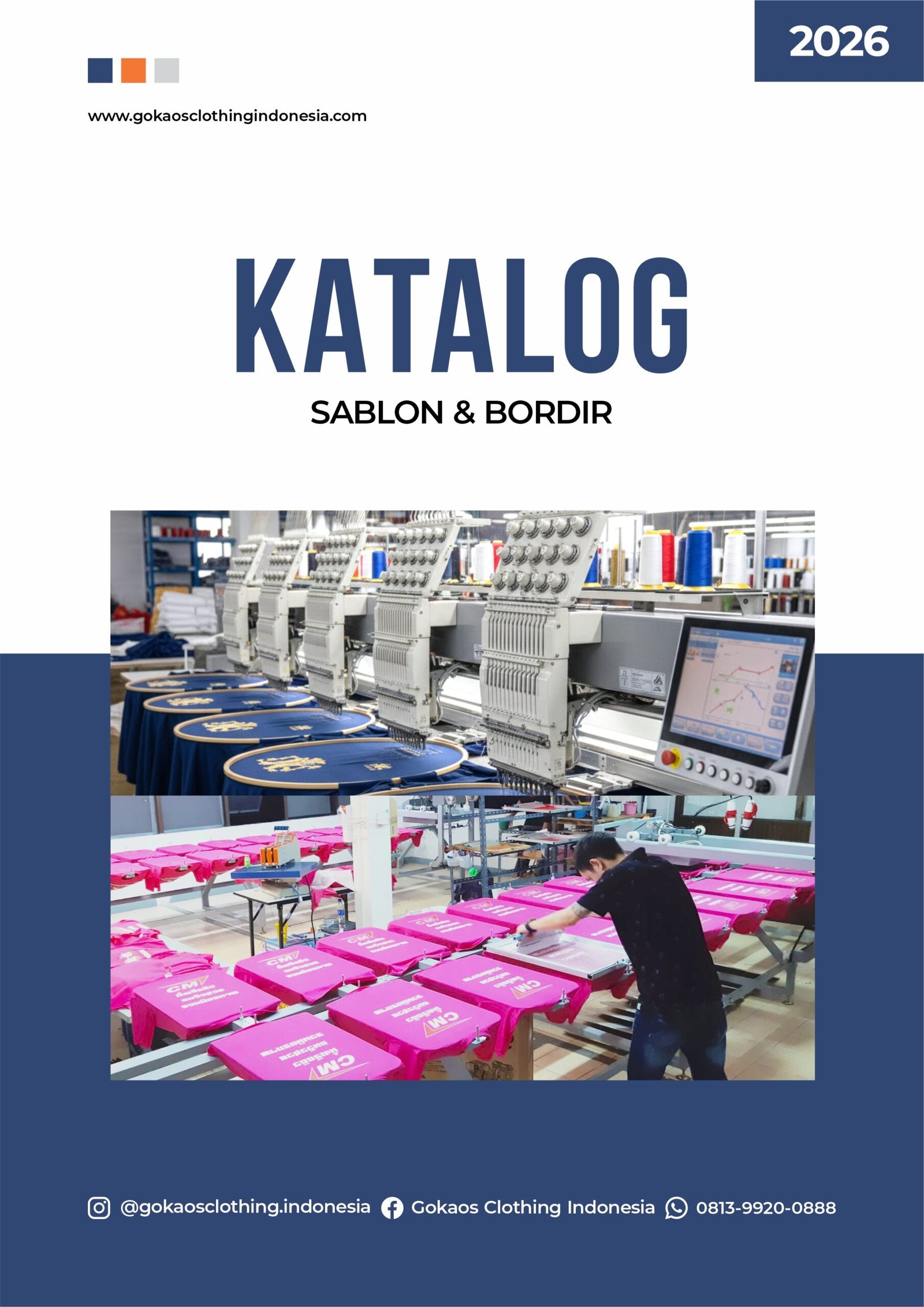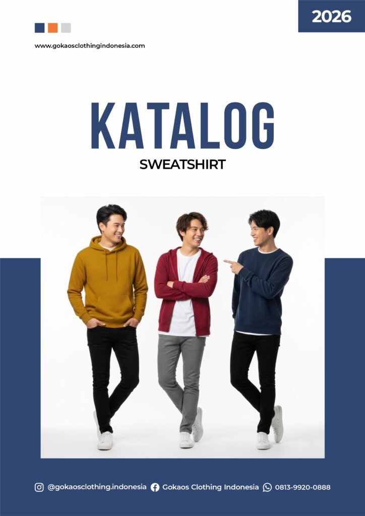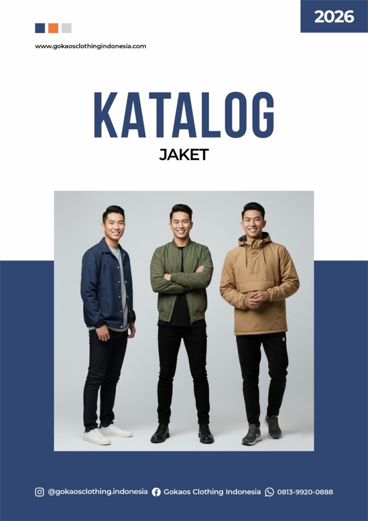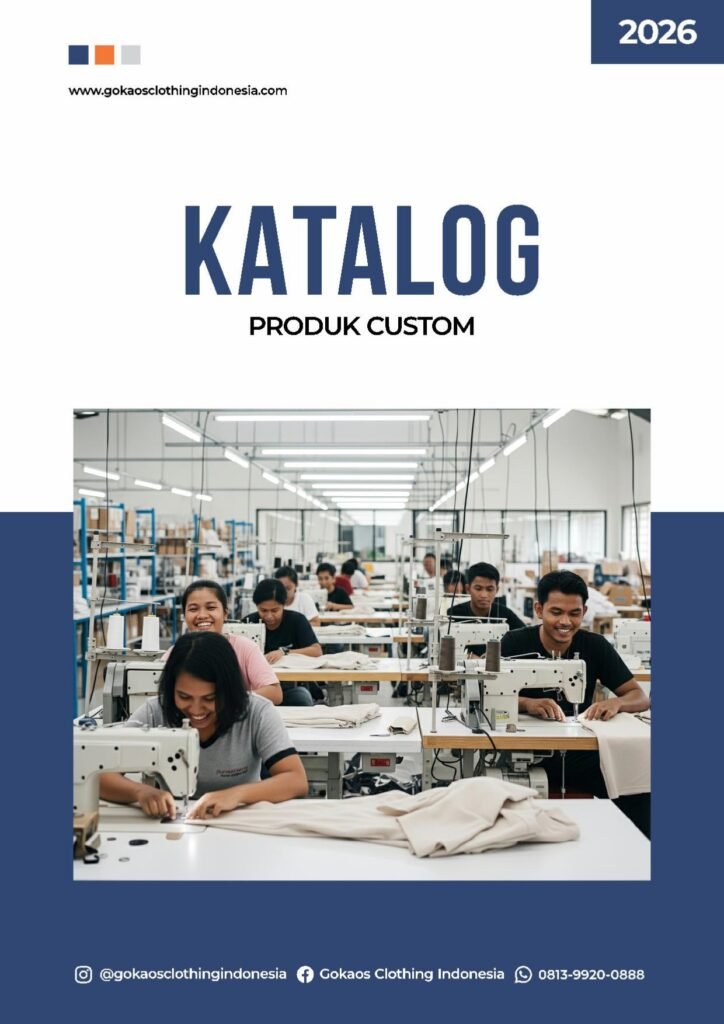 E-Katalog Produk Gokaos Clothing Indonesia Temukan rangkaian lengkap produk apparel Gokaos Clothing Indonesia melalui e-katalog resmi kami. Dirancang untuk memudahkan Anda melihat jenis produk, bahan, dan pilihan layanan dalam satu halaman. Pilihan Produk Gokaos Semua produk dapat di-custom logo, warna, dan desain sesuai kebutuhan Anda. Minimum order fleksibel dan kualitas premium. KAOS T-Shirt Premium, T-shirt Soft Cotton POLO Super Premium, Premium, Soft SWEATSHIRT Crewneck, Hoodie, Zipper Hoodie JAKET Windbreaker, Coach, Bomber DRYFIT Jersey Milano BORDIR & SABLON Sablon Digital (DTF, Polyflex, Sublime), Sablon Manual (Rubber, Plastisol), Bordir MERCHANDISE Payung, Tumbler, Mug, Goodie Bag, Apron, TOPI Topi Baseball, Topi Trucker, Topi Rimba PRODUK CUSTOM Kaos oversize,kaos v-neck, tunik, kaos kombinasi, kaos reglan, dll. Lihat Katalog semua Katalog Book Gokaos Clothing Indonesia Lihat katalog book Gokaos Clothing Indonesia sebagai referensi visual untuk memahami detail produk, jenis bahan, dan pilihan layanan yang tersedia.